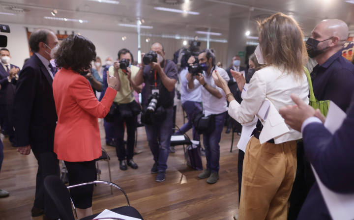 Pero las caras más largas estaban en los diputados de Unidas Podemos, perdidos ante la situación tras la marcha de Pablo Iglesias y la renuncia a última hora de Isa Serra. Las riendas las tomarán a partir de hoy Carolina Alonso y Alejandra Jacinto. El rostro de Jesús Santos radiografiaba perfectamente el sentir morado.