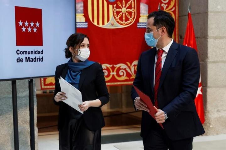 Objetivo: pactar con Vox. La presidenta de la Comunidad de Madrid, Isabel Díaz Ayuso, y el vicepresidente regional, Ignacio Aguado, han comparecido este lunes para anunciar que PP y Cs, las dos formaciones que comparten Gobierno, han alcanzado un acuerdo sobre los presupuestos de 2021. Su principal misión ahora es conseguir que la formación ultraderechista se sume al acuerdo.