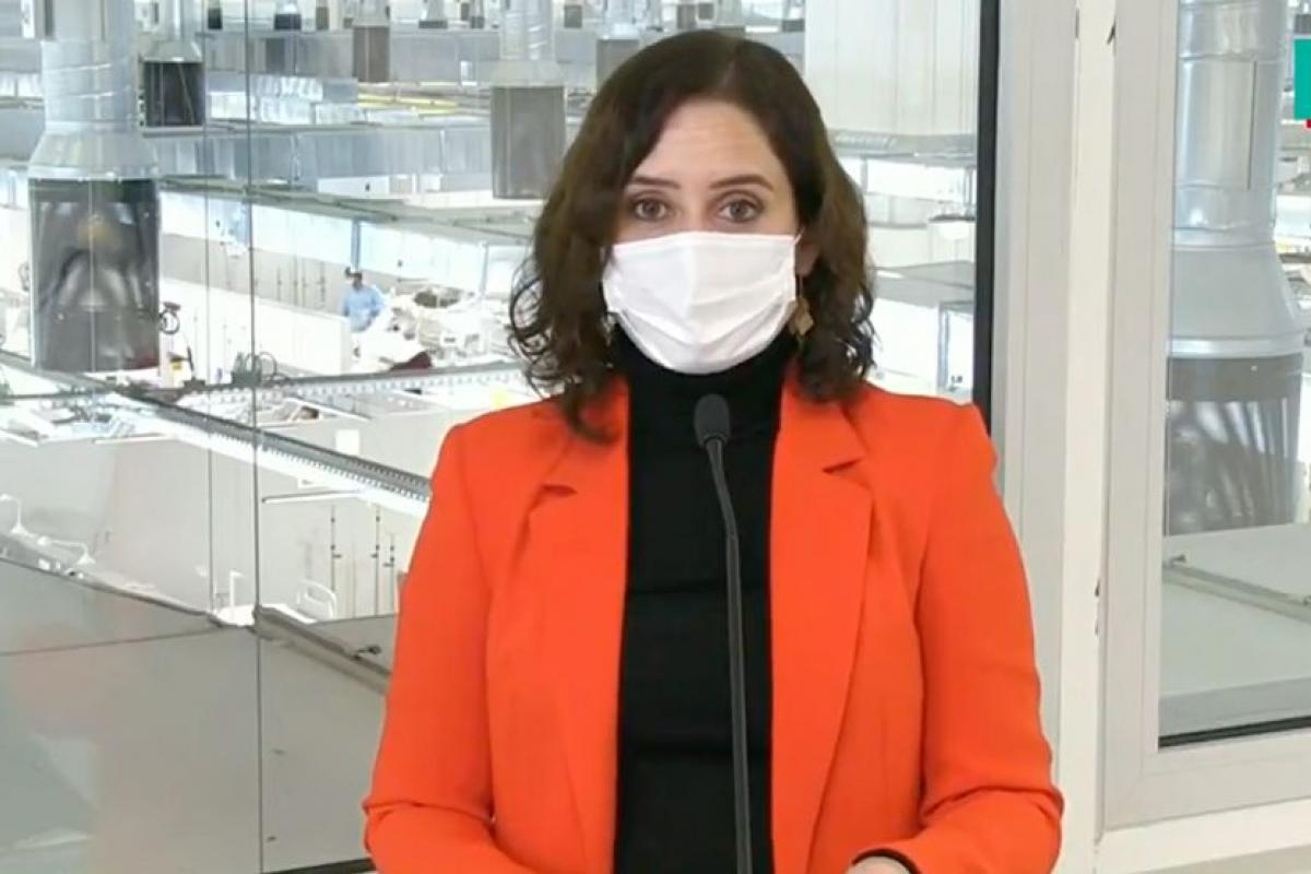 Isabel Díaz Ayuso, este lunes desde el Hospital Isabel Zendal.COMUNIDAD DE MADRID