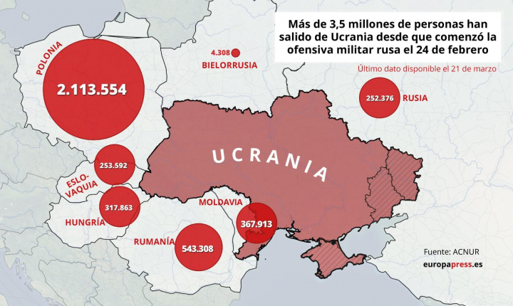 Más de dos millones de los refugiados llegaron a Polonia, mientras que cientos de miles se repartieron en los demás países limítrofes como Hungría, Eslovaquia, Moldavia y Rumanía. Todos tienen el sueño de regresar a sus hogares, más temprano que tarde, pero ahora mismo se enfrentan a la mayor desde la Segunda Guerra Mundial en Europa. Están desorientados, desubicados, en centros temporales. La Unión Europea ha acelerado los procesos de asilo y les ha dado acogida ilimitada -algo que ha generado también cierta incomodidad porque las comparaciones con refugiados de otros orígenes son odiosas- y en los países receptores se trata de escolarizar a los niños rápido para darles algo de normalidad.