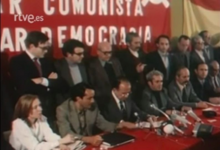 En una rueda de prensa, el 17 de abril de 1977, Carrillo explicó ante la enseña nacional: “La bandera con los colores oficiales del Estado figurará al lado de la bandera del Partido Comunista. Siendo una parte de ese Estado, la bandera de éste no puede ser monopolio de ninguna fracción política y no podíamos abandonarla a los que quieren impedir el paso pacífico a la democracia”.