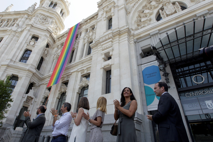 Todo ello en un acto precedido por cierta polémica al haber situado la bandera arcoíris en el lateral izquierdo de la fachada del Palacio de Cibeles al atender a criterios de Patrimonio para no dañar la fachada recientemente restaurada. Ayer por la tarde se colgaba una bandera de España en el centro.