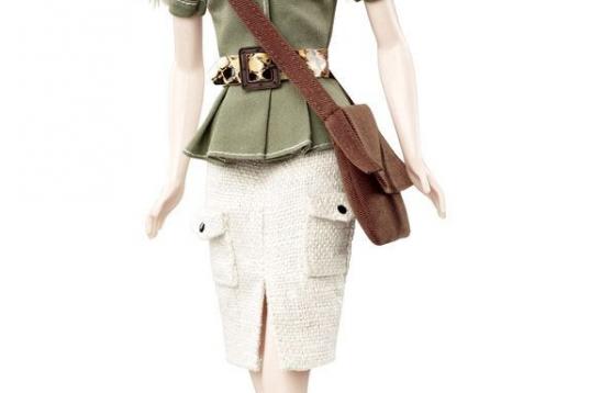 El anuncio está acompañado de una foto de la muñeca, con un vestido rojo ceñido al cuerpo que termina en un volante asimétrico, detalle que se repite en las mangas, muy característica de la cantante.