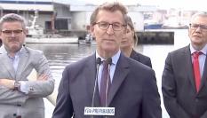 Feijóo en el mercado municipal de Portosín (Porto do Son, A Coruña), acompañado del alcalde sonense, Luis Oujo.
