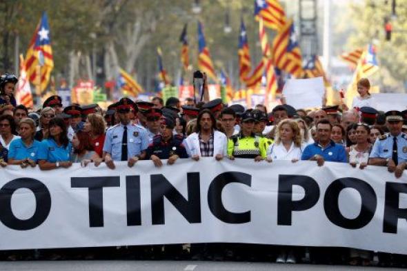 Así, cuerpos de seguridad y de emergencias han llevado la gran pancarta de la cabecera, 'No tinc por', que es el lema que ha unido a todos los asistentes.