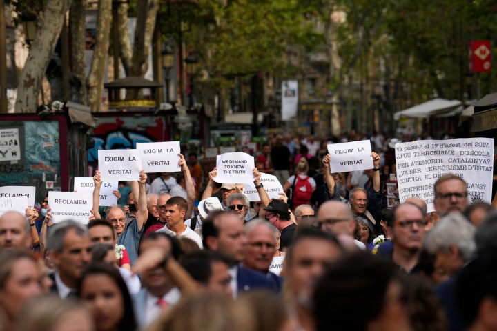 Los representantes de las instituciones han cedido el protagonismo a las víctimas en un emotivo y tenso acto en Barcelona para conmemorar el quinto aniversario de los atentados del 17-A en Las Ramblas y en Cambrils, en el que decenas de personas situadas en los alrededores han roto el silencio al grito de “queremos la verdad” y han abucheado a los políticos.