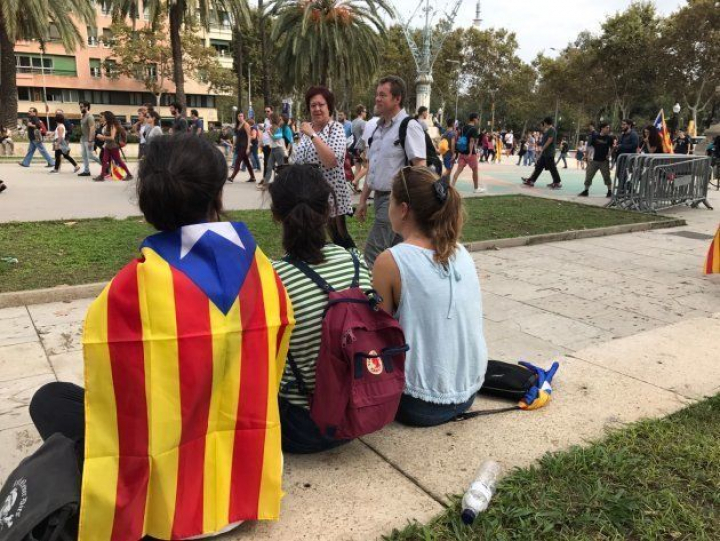 Bajo el Arc del Triomf, otro grupo de amigos que hacen huelga discuten sobre el tema. Pep dice: "Creo que intentarán detener a Puigdemont y asaltar la Generalitat. No hay información, no hay radio macuto de esto, pero es la percepción. Estamos en un país absolutamente fascista, no se puede esperar más". ¿Puede haber un giro y llegar a otra solución que no se la DUI? Su mujer contesta: "No ha ha habido durante seis años, ahora no tampoco". Y llegan a una conclusión: "Esto con una llamada Merkel lo arregla, no la UE. Ella es la persona con más poder. Tanto en un sentido como en otro, pero no nos engañemos. Esto es un mercado de interese y la UE responde a hechos consumados".
