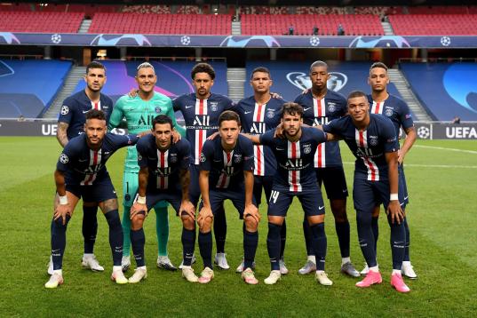 LISBON, PORTUGAL - AUGUST 23: In this handout image provided by UEFA, Paris Saint-Germain players pose for a team photo before the UEFA Champions League Final match between Paris Saint-Germain and Bayern Munich at Estadio do Sport Lisboa e Benfi...