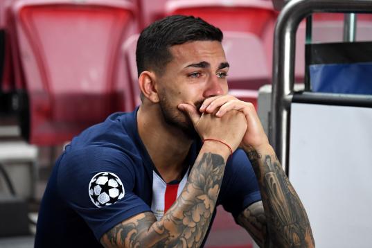 LISBON, PORTUGAL - AUGUST 23: Leandro Paredes of Paris Saint-Germain looks dejected following his team's defeat in the UEFA Champions League Final match between Paris Saint-Germain and Bayern Munich at Estadio do Sport Lisboa e Benfica on August...