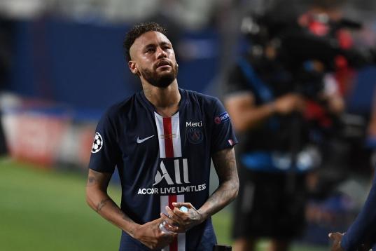 Paris Saint-Germain's Brazilian forward Neymar cries at the end of the UEFA Champions League final football match between Paris Saint-Germain and Bayern Munich at the Luz stadium in Lisbon on August 23, 2020. (Photo by David Ramos / POOL / AFP) ...