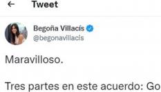 Villacís hacía referencia al tuit de Fer Martínez, miembro del partido de Abascal. En él, posteriormente borrado, afirmaba que “Rita Maestre, conocida como ‘la asaltacapillas’, ha conseguido que el Pleno Municipal reconozca ‘el derecho de toda mujer a ejercer su derecho al aborto en libertad’, gracias al apoyo entusiasta de Begoña Villacís y un Ciudadanos sin norte”.