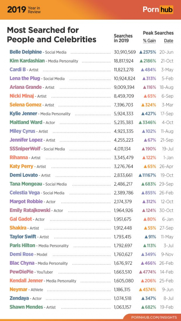 Celebridades más buscadas en Pornhub en 2019 PORNHUB