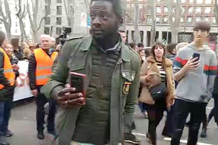 Bertrand Ndongo, el simpatizante negro de Vox, en el 8-M: "¡No queremos nazis aquí!"