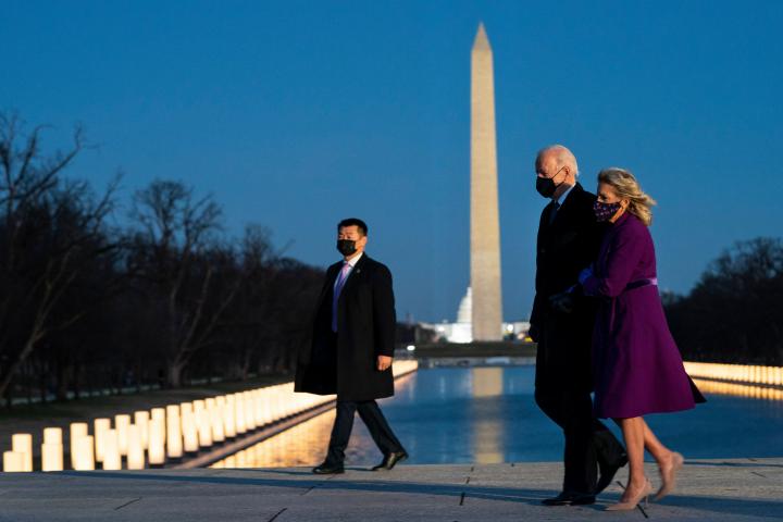 Voló luego hacia Washington para reunirse con la que será la primera mujer vicepresidenta del país, Kamala Harris. Juntos participaron en su primer acto en Washington antes de la investidura de este miércoles: una ceremonia de homenaje a las víctimas de la pandemia en Estados Unidos, donde unas horas antes se había alcanzado el sombrío récord de 400.000 muertes por Covid-19.