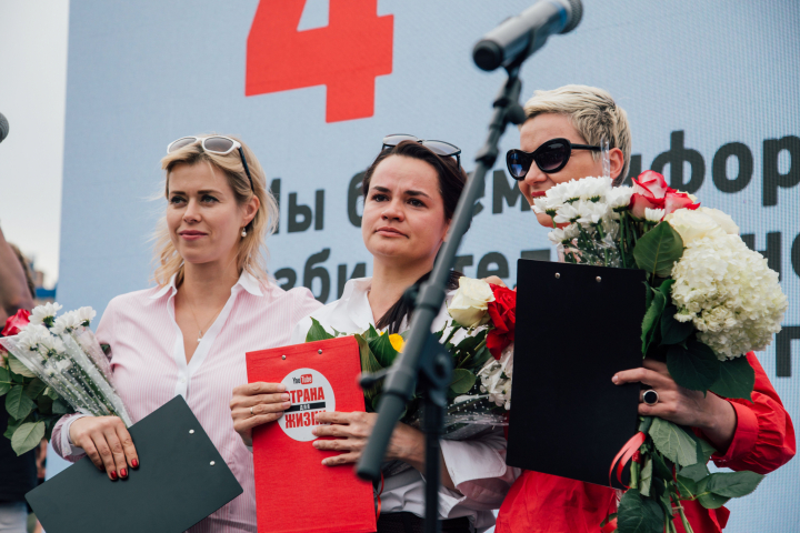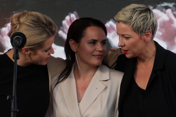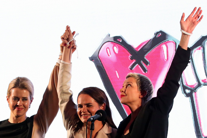 Entre las candidatas que seguían vivas, tres mujeres que han mantenido el pulso al presidente: Svetlana Tijanovskaya, que decidió presentarse en las urnas después que arrestaran a su esposo, Serguéi Tijanovski, un reconocido youtuber que ya no pudo concurrir a los comicios; Verónika Tsepkalo, extrabajadora de Microsoft, mujer de Valery, que dio el paso adelante también para ocupar el espacio de su marido exiliado, y Maria Kolésnikova, segunda de una formación de Babaryko, su jefa de campaña, convertida en líder por el encierro de su compañero. Tijanovskaya, una exprofesora de idiomas de 38 años, ha sido la que ha encabezado a los opositores. La llaman Juana de Arco. Bajo su paraguas han competido las tres juntas contra el presidente, un gesto sin antecedentes que ha calado también entre sus conciudadanas descontentas.