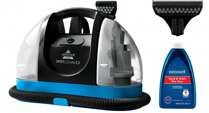 El limpiador portátil para alfombras y tapicerías es eficaz para derrames y manchas. Su precio es de 179,99 euros y ahora, con el descuento, cuesta 139,99 euros.