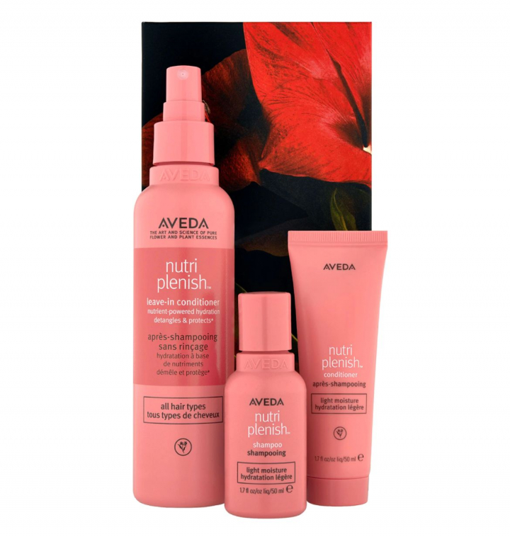Este estuche de edición limitada para Navidad de Aveda contiene todo lo que necesitas para tener un pelo sano y bonito con productos de su línea Nutriplenish. El paquete incluye un champú nutritivo, un acondicionador y un tratamiento de hidratación sin aclarado. Los productos son veganos y el precio es redondo. Cómpralo por 35,99 euros (antes 44,99).