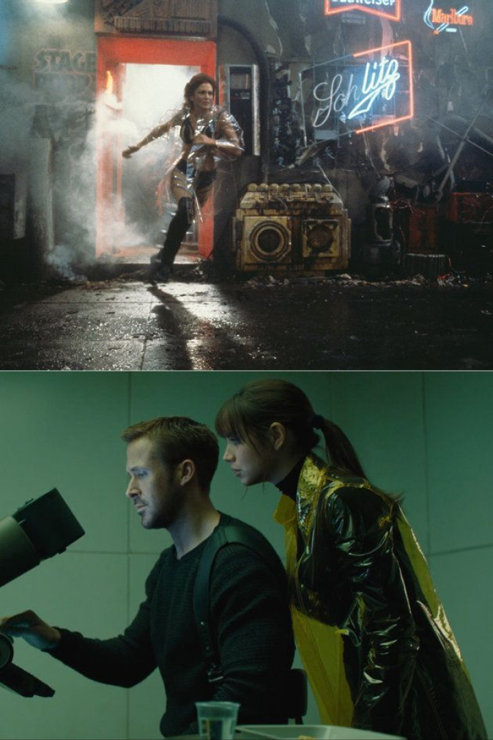 La escena en la que la actriz Joanna Cassidy corre con un abrigo transparente sobre un biquini negro constituye otro referente imprescindible para los estilistas de moda. Tanto es así que en la secuela no han podido prescindir de él, y en el tráiler ya se ha podido ver a Ana de Armas con una réplica del famoso chubasquero.