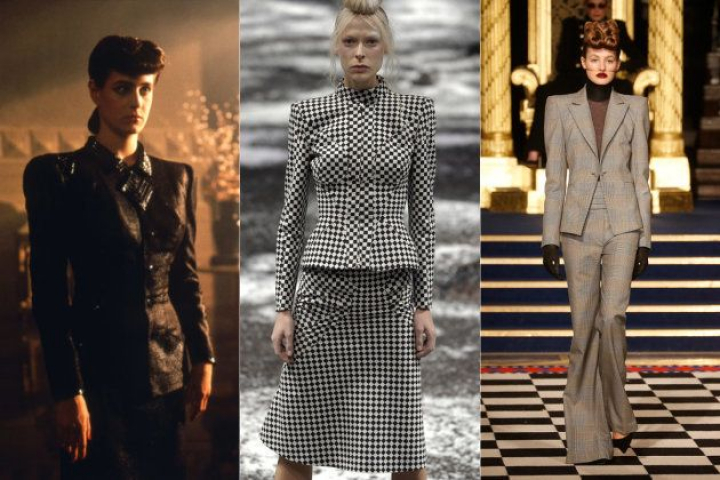 Al igual que su peinado, los trajes de chaqueta con pronunciadas hombreras de la actriz Sean Young parecen haber viajado 70 años desde la década de los 40. Los hemos visto replicados en infinidad de desfiles como los de la imagen: Alexander McQueen (FW 2003/04) y Gareth Pugh (FW 2016/17).