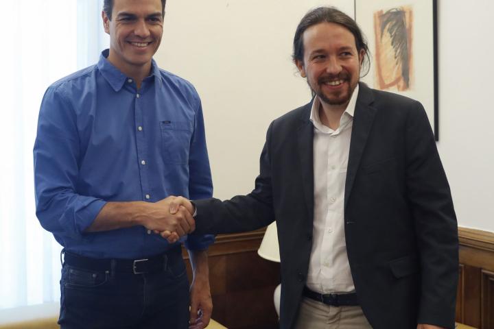 Iglesias pretende hacer valer sus escaños y aguantar hasta el final el pulso, convencido de que aunque a su partido le fuera mal en una segunda vuelta, el PSOE lo tendría aún más difícil para gobernar de lo que ya lo tiene en el actual contexto. Los morados entienden que si los socialistas les tendrán de socios de gobierno en Valencia, Canarias o La Rioja, acabarán aceptando que sea igual en España, y que lo de ahora no es más que un farol para redoblar la presión en busca de una abstención de PP y Ciudadanos, pese a que el mensaje de sus bases la noche del 28-A fue “con Rivera, no”.