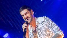 En las primeras imágenes publicadas en las redes sociales, podemos ver a Melendi con camisa, pantalón y corbata negra y sólo un detalle de color: el cinturón.