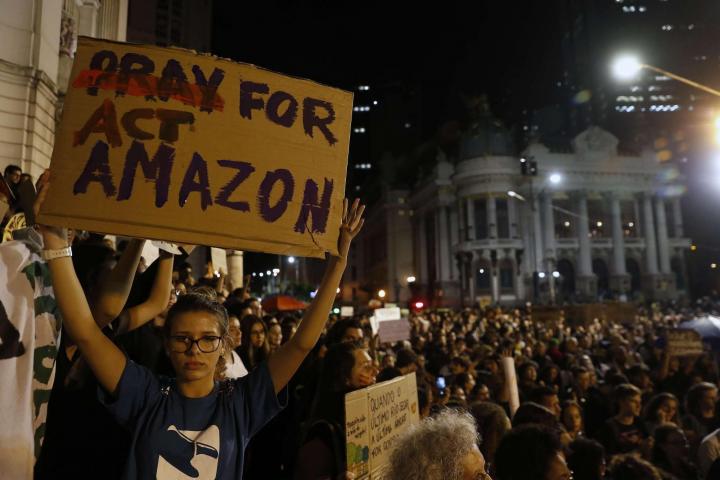 Con carteles de “Act for Amazon”, “Salven nuestro planeta” y “La Amazonia no está en venta”, miles de personas protestaron en distintas ciudades de Brasil y frente a embajadas y consulados de otras capitales latinamericanas y europeas contra Bolsonaro, un escéptico del cambio climático, al que acusan de propiciar la deforestación y los incendios con sus políticas de abrir las zonas protegidas al agronegocio.