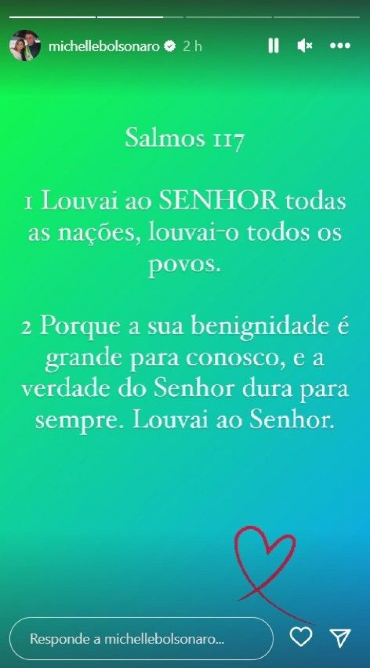 Más activa en las últimas horas ha estado la primera dama Michelle Bolsonaro. En Instagram, la mujer del presidente ha publicado una serie de historias pero ninguna relacionada con el tema electoral.