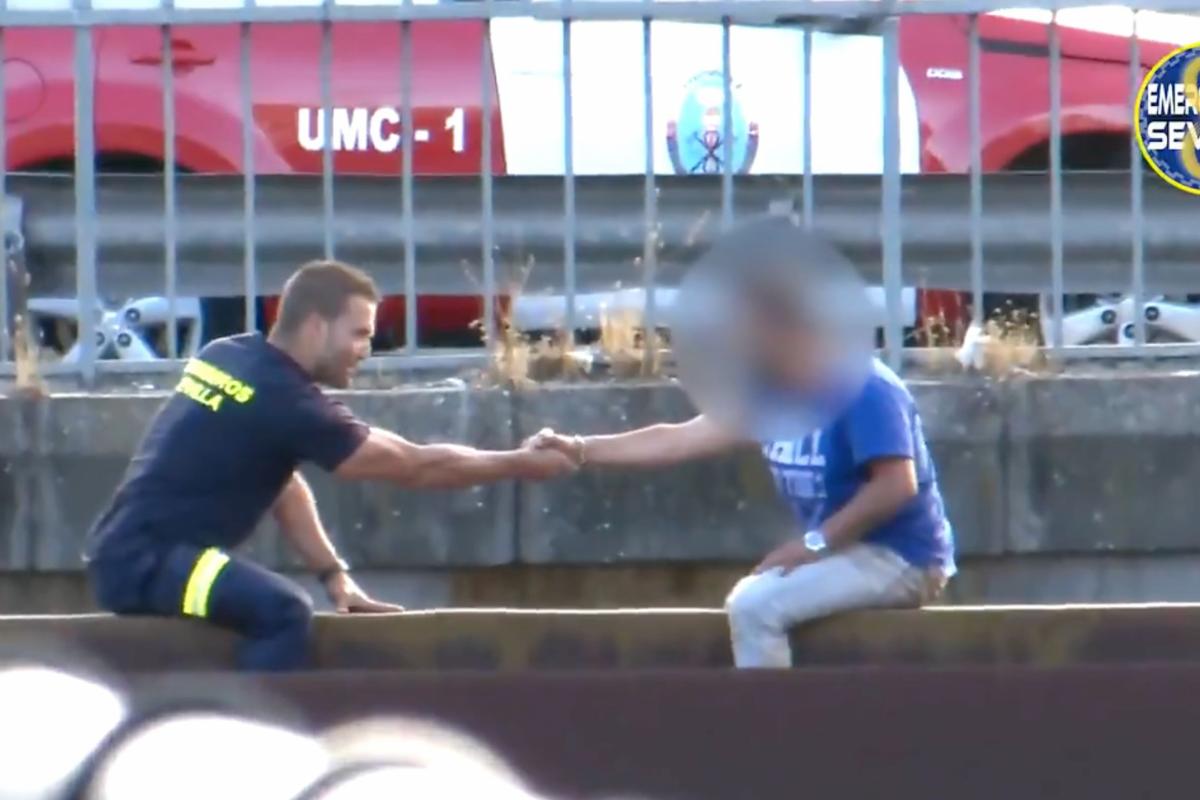 Antonio Martínez, bombero y psicólogo del Ayuntamiento de Sevilla, se ha convertido en todo un héroe para muchos de los que han visto lo que hizo en la tarde de este viernes, cuando tuvo que intervenir para convencer a un hombre que se encontraba sobre una viga sobre una carretera a punto de arrojarse al vacío.