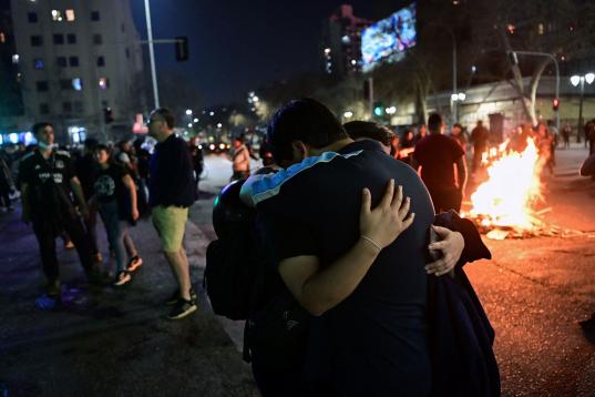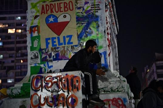 En Plaza Italia, lugar simbólico de la capital que fue el epicentro de las protestas de 2019, empezaron a llegar los primeros grupos de simpatizantes de la opción perdedora, pero el espacio fue copado temprano con presencia policial que cercó el emblemático sitio.
