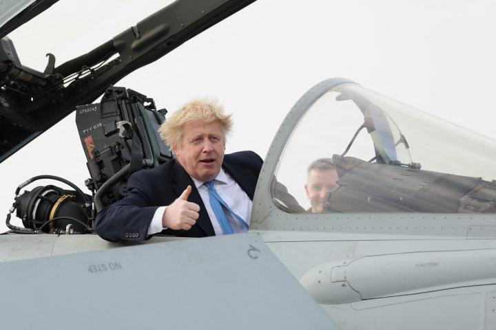 En un vídeo recogido por el periodista Sandro Pozzi se puede ver a Johnson volar y saludar a cámara a bordo de un Eurofighter Typhoon, uno de los cazas del Ejército de Reino Unido.