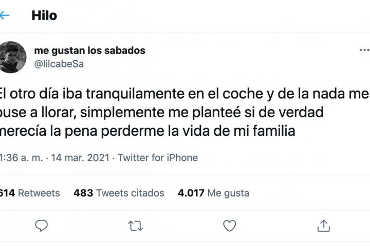 “Parece una gilipollez, pero llevo tres años sin estar en el cumpleaños de mi hermana, veo a mis padres una vez cada muchos meses, a mis abuelos apenas los veo en vacaciones y no recuerdo el último cumpleaños de mis primos en el que estuve”, prosigue.