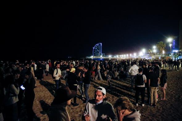 Fuentes de la policía local han informado de que, de las casi 4.000 personas desalojadas, unas 1.200 lo fueron de las playas de la ciudad. Los agentes han disuelto también concentraciones festivas en los puntos habituales de este tipo de convocatorias en la ciudad, como el paseo del Born.