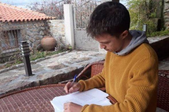 El diputado de Podemos Íñigo Errejón colgó este viernes por la noche una fotografía en la que se le ve sentado en el porche de una casa rural repasando apuntes sobre Gramsci.