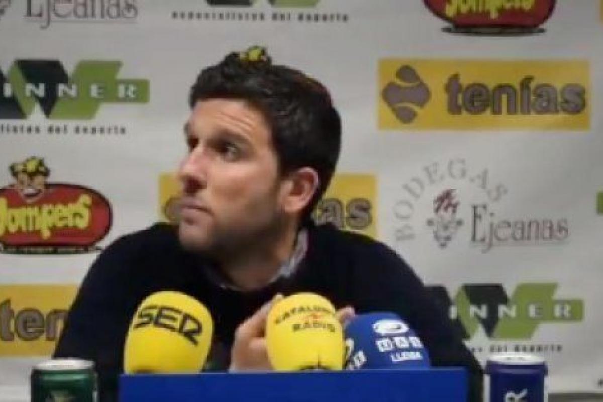 Polémica en la sala de prensa. Un periodista mostró su enfado después de que el entrenador del Lleida, Gerard Albadalejo, respondiese en catalán a una pregunta de Catalunya Ràdio tras el partido entre su equipo y el SD Ejea.