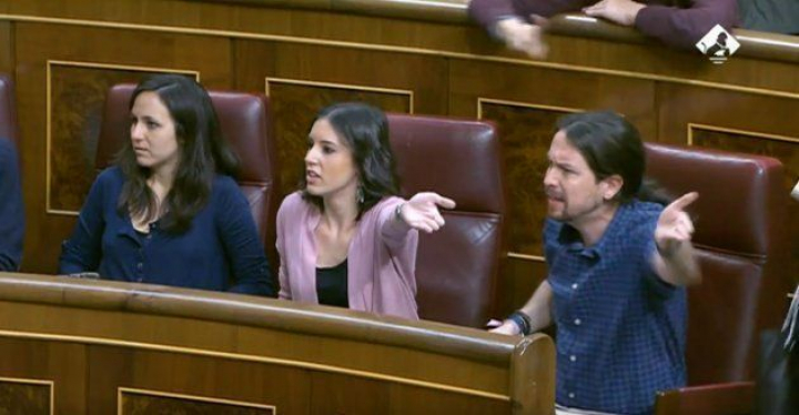 La indignación ha sido tal entre los diputados de Unidos Podemos que Irene Montero y Pablo Iglesias han subido a la zona de tribuna y la portavoz de la formación morada ha pedido "amparo" a la presidenta del Congreso, Ana Pastor.