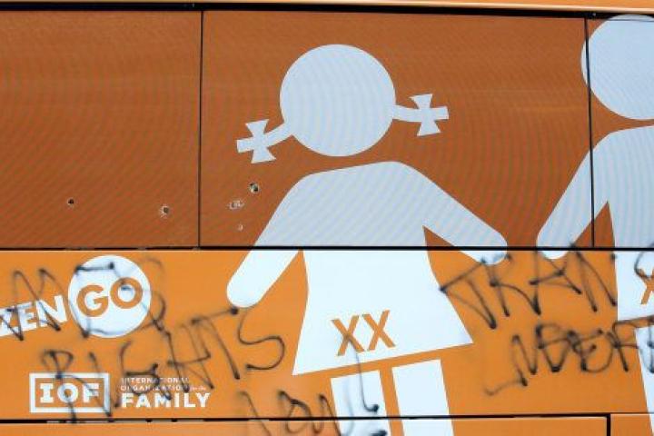 El autobús tránsfobo de Hazte Oír, recibido a martillazos en Nueva York