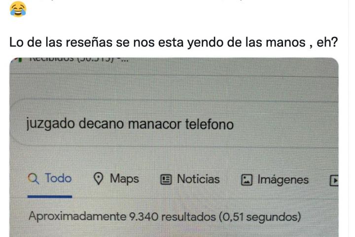 Busca en Google el teléfono del juzgado de Manacor y se lleva una sorpresa al leer una reseña