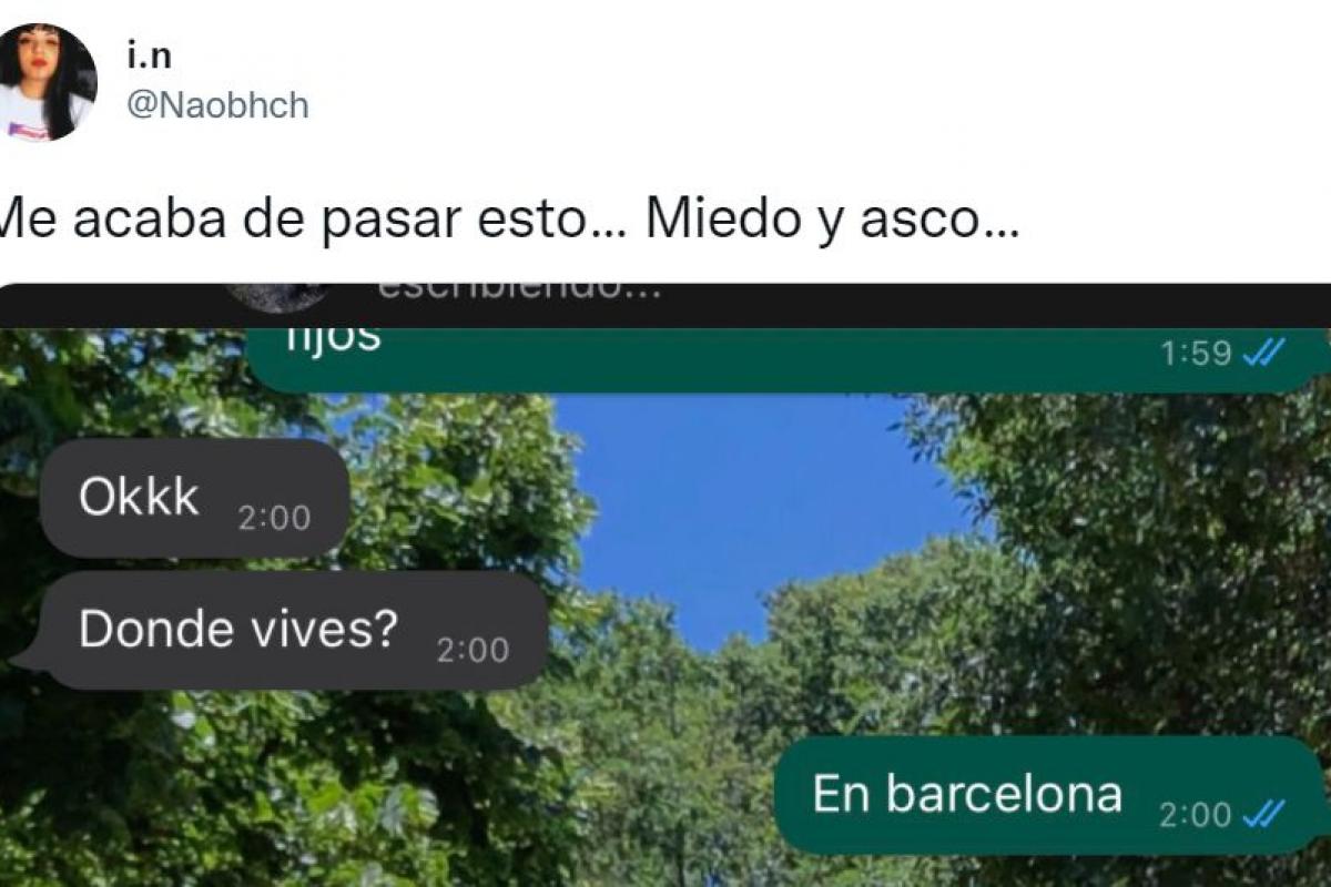 “Me acaba de pasar esto... Miedo y asco...”, ha escrito la joven tuitera que ha compartido el pantallazo.