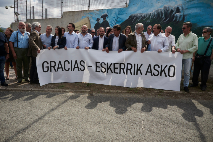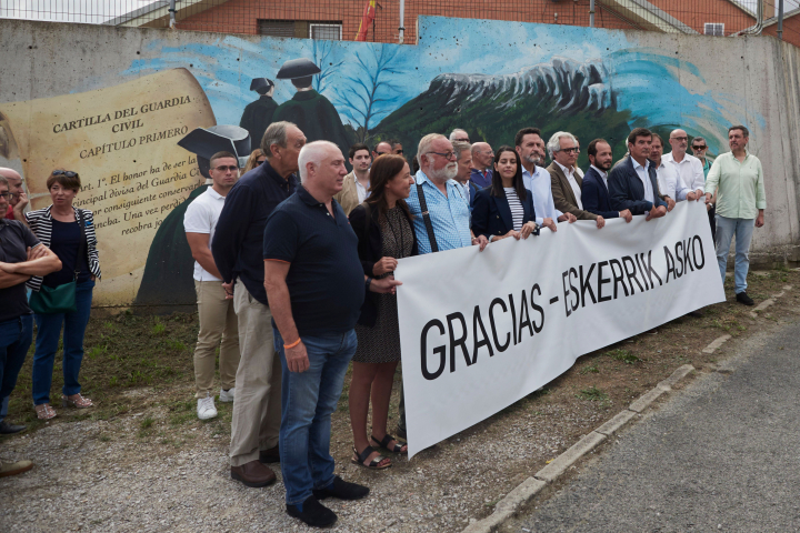 La cúpula de Ciudadanos, el partido presidido por Inés Arrimadas, acudió este viernes a la localidad navarra de Alsasua donde han posado detrás de una pancarta en la que se podía leer gracias en castellano y en euskera, un mensaje dirigido a la Guardia Civil.