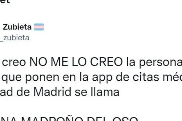 “No me lo creo NO ME LO CREO la persona “de ejemplo” que ponen en la app de citas médicas de la Comunidad de Madrid se llama ALMUDENA MADROÑO DEL OSO”, ha compartido el tuitero H.M. Zubieta, que es el que se ha dado cuenta del nombre.
