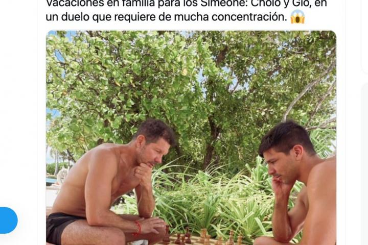 El 'Cholo' Simeone juega al ajedrez con su hijo Gio en la playa.TWITTER: SC_ESPN