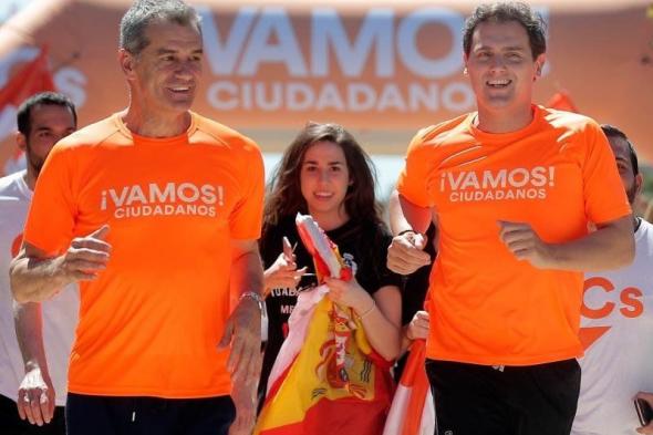 A menos de 24 horas del Maratón de Madrid, Rivera y sus compañeros han aparecido perfectamente conjuntados con ropa deportiva con los colores de C’s. Y todo un despliegue de medios: meta, pancarta, cinta... No ha faltado de nada.