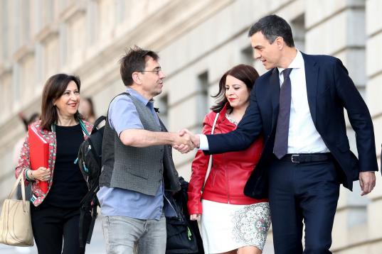 Pablo Iglesias felicita a Sánchez después de convertirse en presidente del Gobierno.