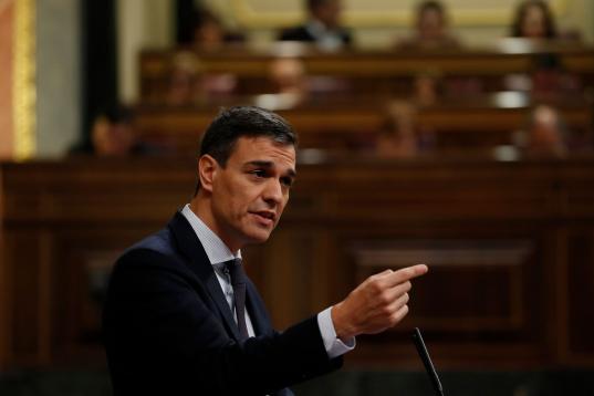 Sánchez pronuncia su discurso antes de convertirse en presidente del Gobierno.
