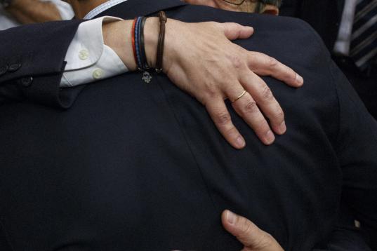 Durante el acto han estado presentes su mujer, Begoña Gómez (i), y su madre.