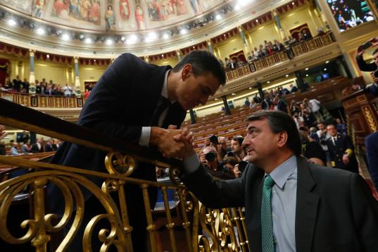 Sánchez y Aitor Esteban se dan un apretón de manos al terminar la sesión.