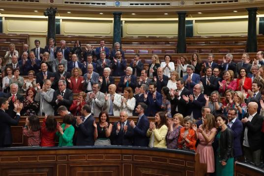 La bancada socialista aplaude al nuevo presidente del Gobierno.