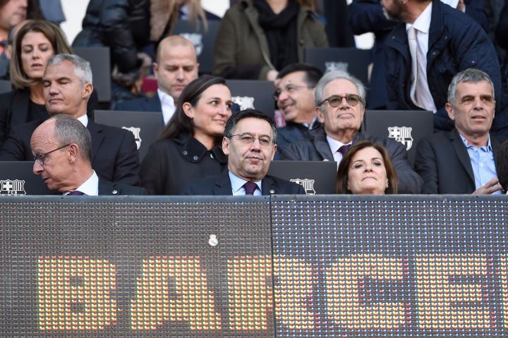 BARCELONA, SPAIN - FEBRUARY 22: (L-R) president Josep Maria Bartomeu of FC Barcelona, president Amaia Gorostiza Telleria of SD Eibar during the La Liga Santander match between FC Barcelona v Eibar at the Camp Nou on February 22, 2020 in Barcelo...