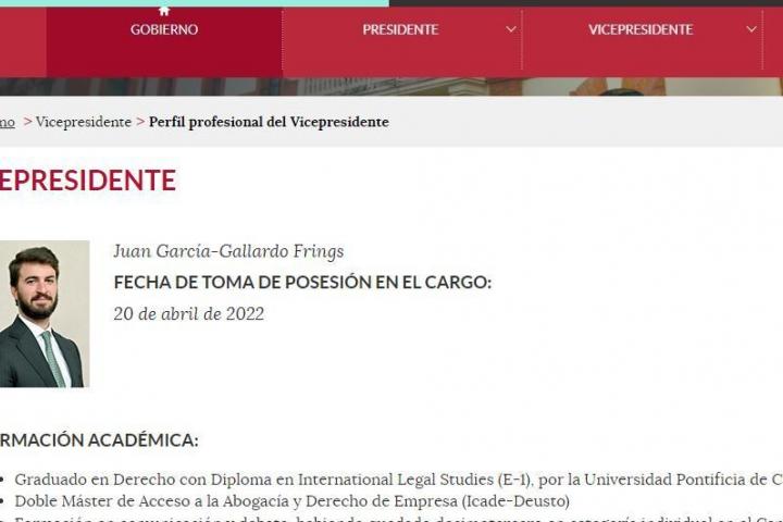 Cachondeo total con un punto del currículum de García-Gallardo en la web de la Junta de CyL