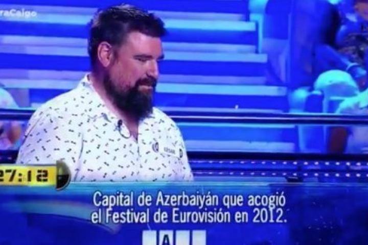 Su mensaje está acompañado de un vídeo en el que un concursante responde "Baku" en lugar de "Bakú" y su respuesta es aceptada: